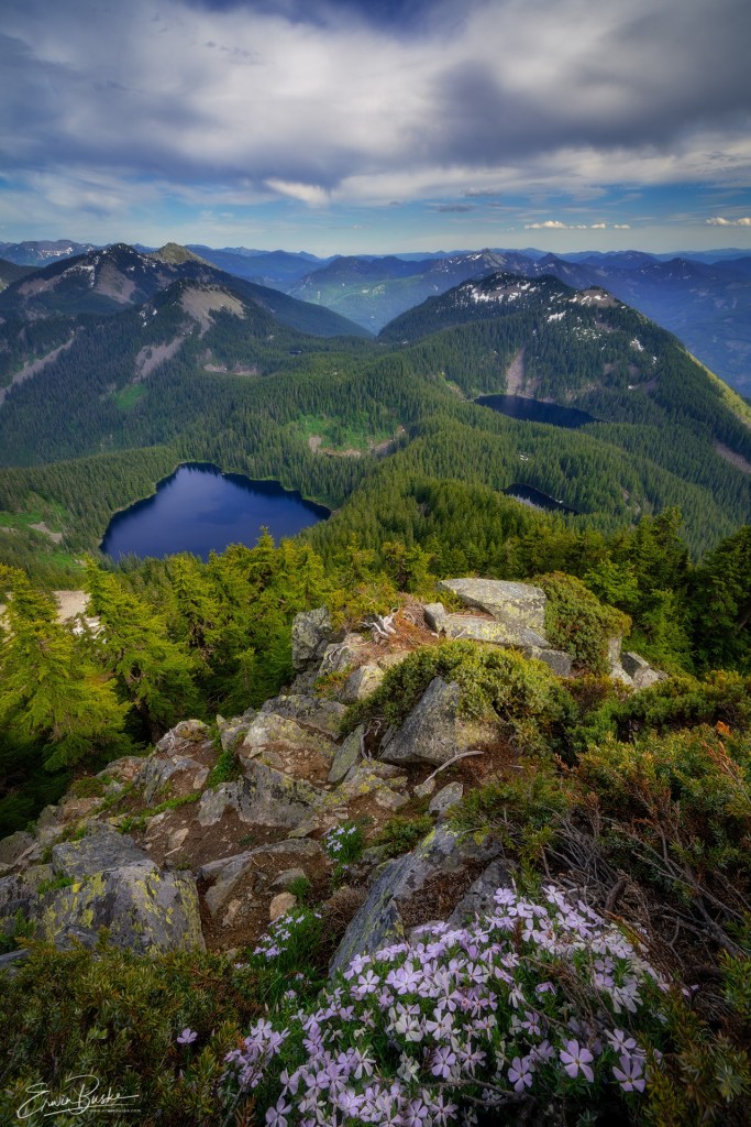 This image is looking out to some of my favorite lakes and peaks of Washington’s Alpine Lakes Wilderness area-Kulla Kulla and Mason Lakes, and Bandera, Pratt, and Granite Mountains. For me this is where my journey into Washington’s wilderness began at an early age hiking with my family and often neighborhood friends to the various lakes of this Wilderness Area. It is also a place I am always enthusiastic about returning to. Each time I revisit these beautiful ridges they look both familiar and new. I return a changed person and that seems to also effect my experience of this place. On this trip, the Alpine Lakes seemed more beautiful than ever before!