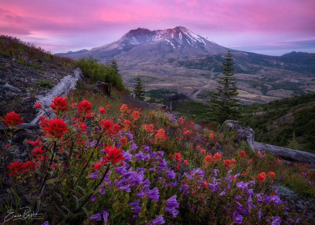 I consider this June Sunrise at St. Helens a near miraculous event: beautiful color in in a cloud filled sky, flowers near their prime, little wind, and beauty all around. It is moments like this that I feel so blessed to be fully alive and awake, witnessing nature at her best!
