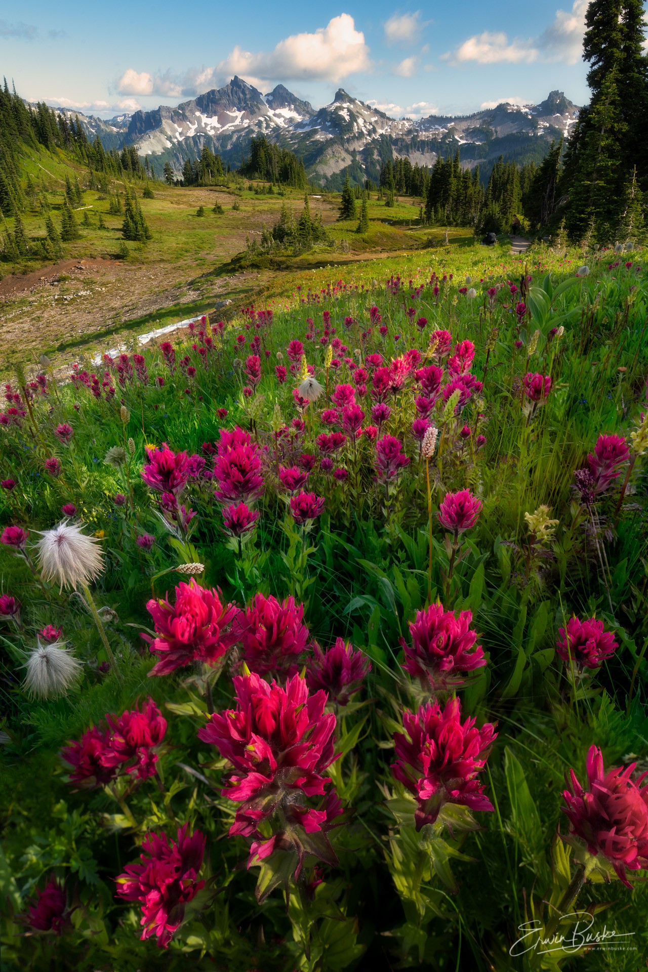 This image was taken on a middle of August evening at Spray Park. A misty Hessong Rock is in the background. Although Rainier was never visible it did not matter to me. All I needed were these beautiful flowers and light.