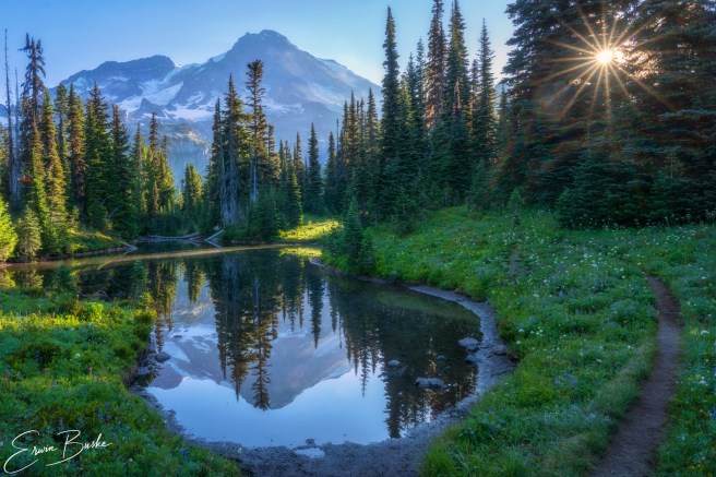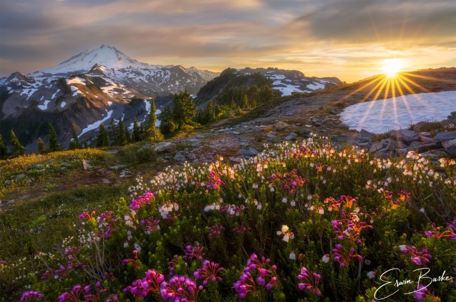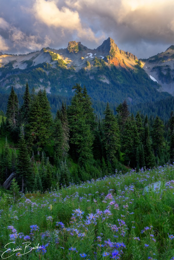 Closely related to Awakening is Light. This Summer, I took an evening hike around the Paradise area of Mt. Rainier. The blue asters were now out, an August-blooming flower. The clouds thickened as the evening progressed, and it was also windy. The mountain was not visible. In conditions like this, my inclination is to follow the light. On this evening, it was over Pinnacle Peak in the Tatoosh Range. I suppose this is somewhat of a metaphor for life. We should embrace the light. Follow it wherever it may lead us. Sometimes it’s hard to find, but it is always there. We find light in nature, in other people, and each of us has our own inner light. For myself and many others, following the light is a very spiritual act. With the close connection of light and spirituality it should not surprise us that following the light in photography leads us to spirituality.